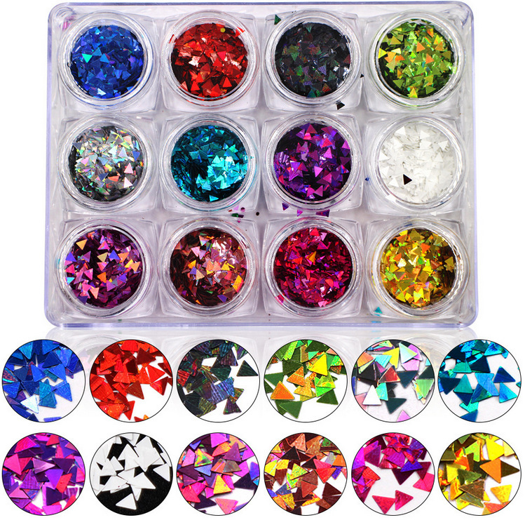 12 Grid/Set Holographic Nail Glitter Sequins Sparkly 3D Thin Butterfly Flakes Polish