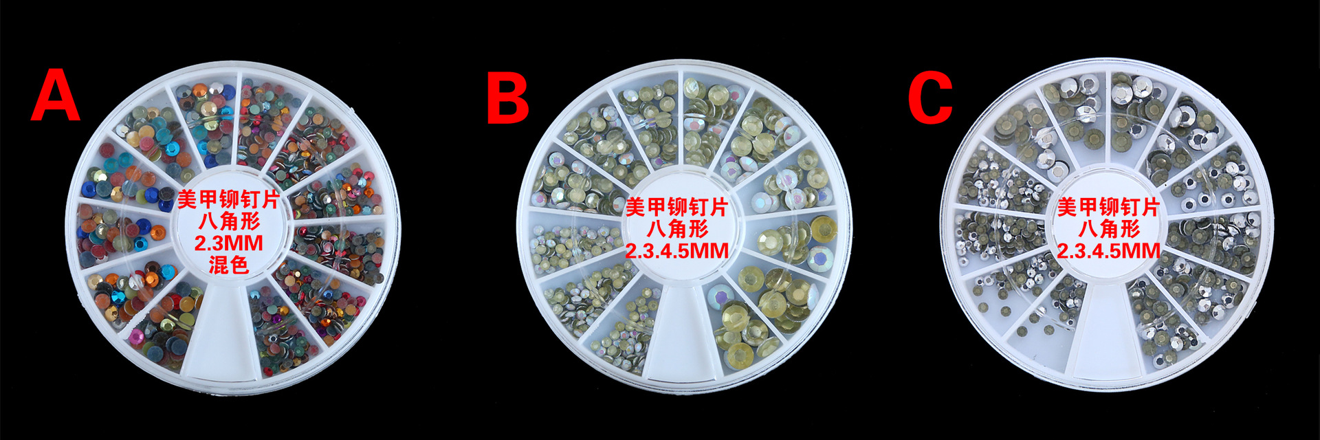 Mixed-size Round Flat Bottom Nail Rhinestones Acrylic Shinning for UV Gel
